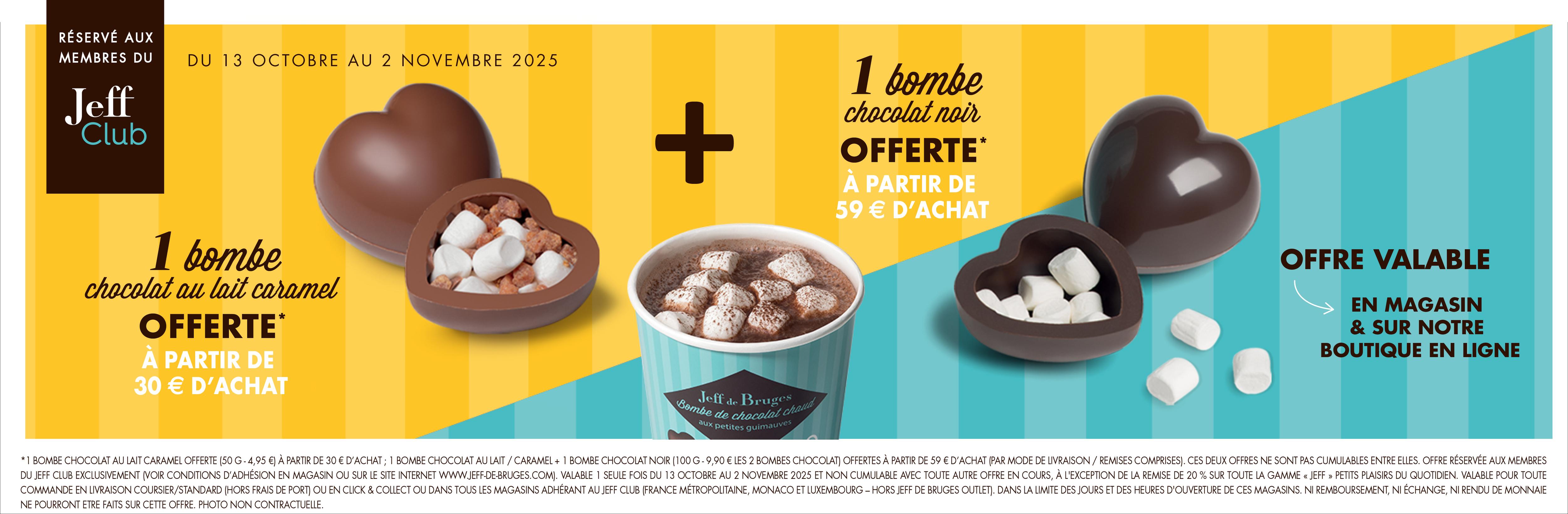 Toutes nos offres sont valables dans les magasins Jeff de Bruges de France métropolitaine, de Monaco et du Luxembourg (hors Jeff de Bruges outlet).