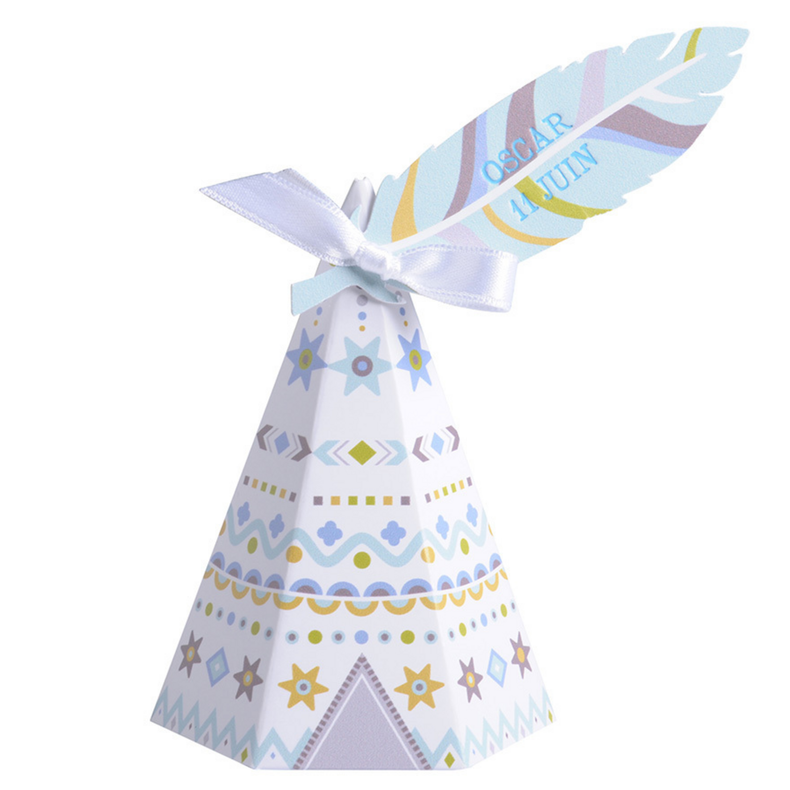 Tipi bleu étiquette plume indienne Tipi bleu étiquette plume indienne Couleur : Sélectionner Bleu Rose Je choisis mes dragées