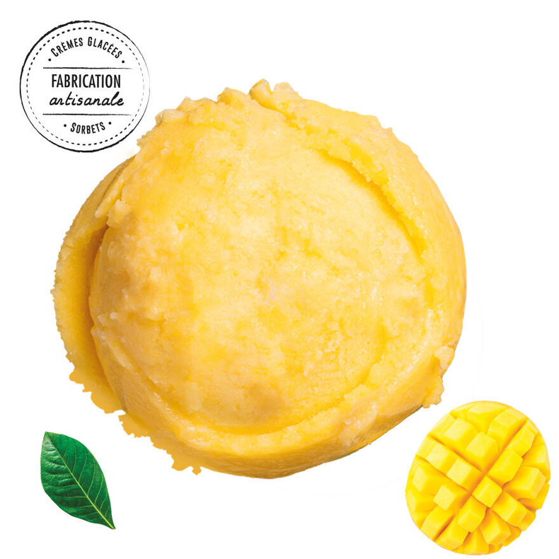 Ingrédients : Eau, purée de mangue bio 28%, sucre bio,sirop de glucose déshydraté bio, jus de citron bio, stabilisants : farine de graines de guar et decaroube bio.