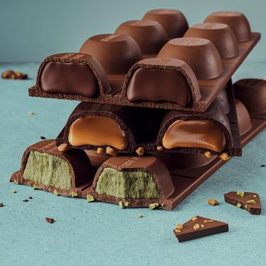La tablette de chocolat se réinvente chez Jeff de Bruges : craquez pour un fourrage incroyablement généreux et fondant. Caramel, pistaches, praliné, fondant suprême... Il y a le choix !