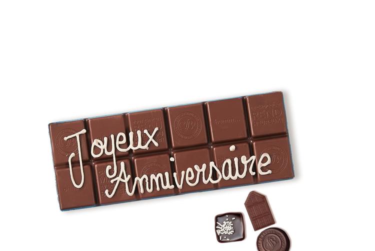Pour un cadeau encore plus original et gourmand, découvrez aussi des assortiments dans lesquels nous glissons une tablette de chocolat personnalisée. Suscitez ainsi la surprise et l’émotion en faisant inscrire sur la tablette le message de votre choix : à vous de trouver l’inspiration pour que vos proches se souviennent longtemps de ce jour important ! Bien sûr, vous pouvez tout simplement souhaiter un joyeux anniversaire, mais vous pouvez aussi en profiter pour déclarer votre flamme, faire un compliment ou un trait d’humour.