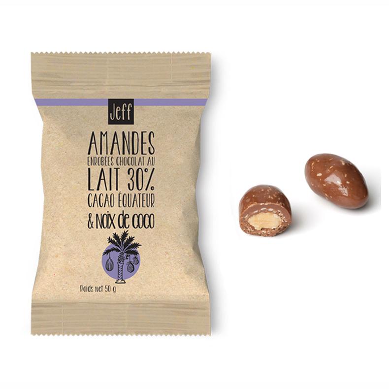 Sachet amandes chocolat au lait et noix de coco - 50 g