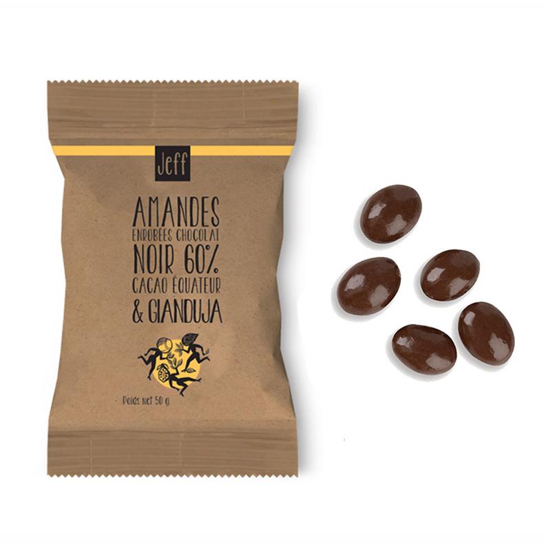 Sachet amandes chocolat noir 60 % et gianduja - 50 g