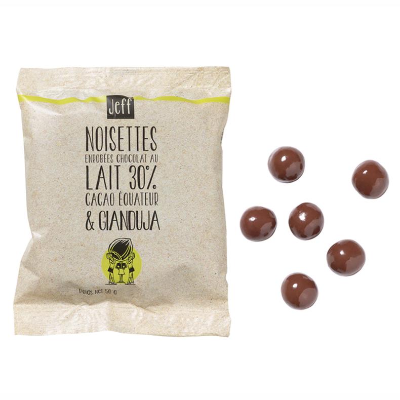 Sachet noisettes chocolat au lait et gianduja 50 g
