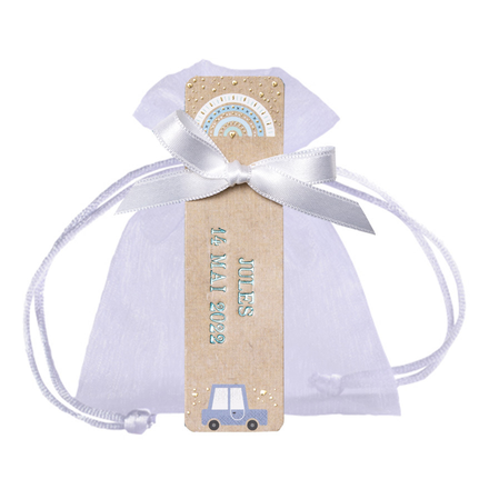 POCHETTE ORGANDI ETIQUETTE ARC EN CIEL BLEUE Couleur : Sélectionner Blanc Bleu turquoise Bleu ciel Merci de sélectionner les caractéristiques du produit. Je choisis mes dragées