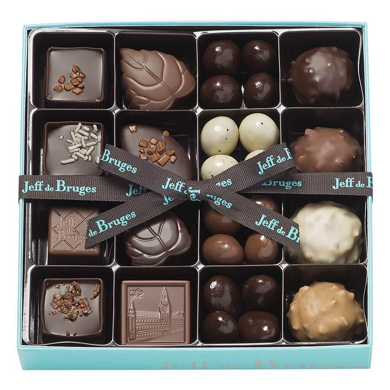 Soyez assurés d'un grand moment de gourmandise avec cette boîte de 12 chocolats assortis et d'amandes enrobées de chocolat, en 4 recettes.