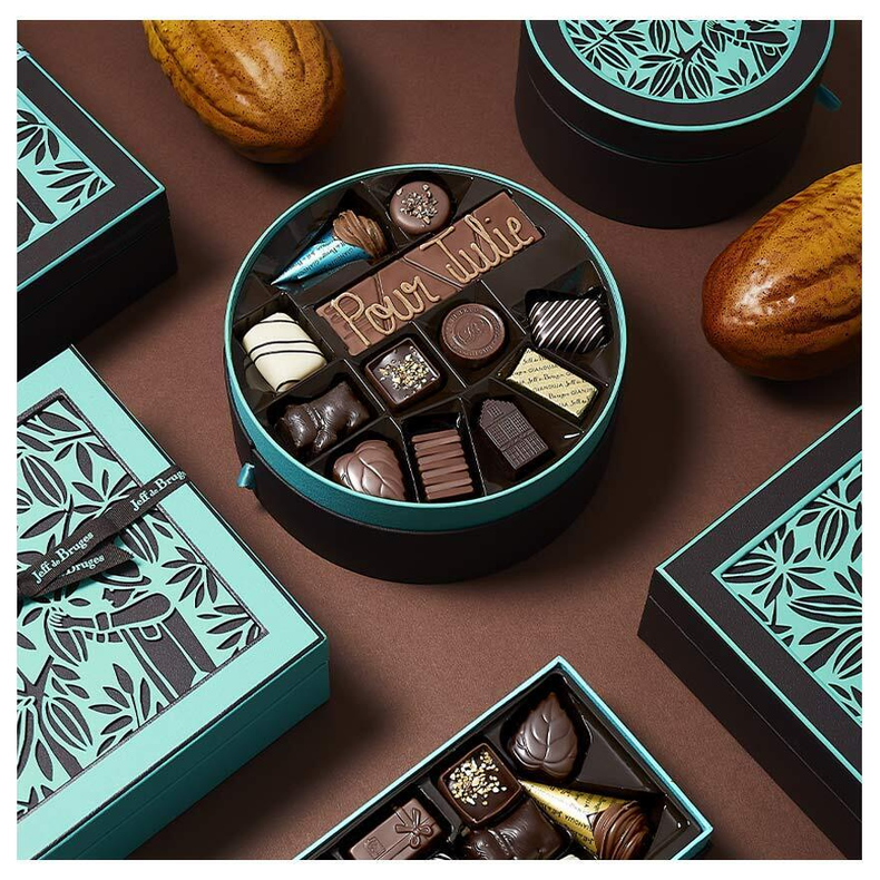 Jeff de Bruges a réinventé son joli coffret rond s'ouvrant en 2 plateaux, en y ajoutant une barre de chocolat noir et ses éclats gourmands de cranberries et de muesli. En personnalisant votre message sur la barre de chocolat vous ferez de ce coffret un cadeau unique ! Une attention parfaite pour étonner les gourmands et leur faire découvrir des émotions inédites ! Au-delà des recettes, ce coffret illustre notre goût du détail et affirme notre savoir-faire de chocolatier cacaoculteur. La couleur de la personnalisation peut varier (blanc ou couleur chocolat).