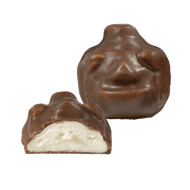 CITROUILLE EN GUIMAUVE ENROBÉE DE CHOCOLAT AU LAIT. Ingrédients : sirop de glucose-fructose, chocolat au lait 30% (sucre, beurrede cacao, pâte de cacao (fèves de cacao origine Côte d’Ivoire), LAIT en poudre, émulsifiant : lécithines, arôme naturel de vanille), sirop deglucose, sucre, gélatine, arôme.