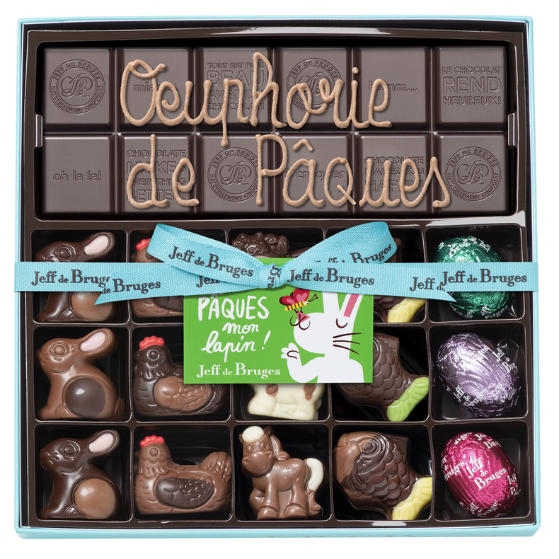 Dans cette boite composée de 15 chocolats, vous aurez un large choix de gourmandises ! L’effet de surprise sera garanti lors de la dégustation des petits oeufs fourrés et des animaux de Pâques.