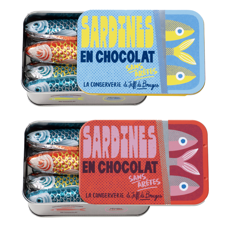 Des sardines en chocolat ? On ne peut que les adorer. À l'intérieur de cette boite, s'exprime des recettes aux textures fondantes, croquantes et croustillantes. Des sardines à déguster par la tête ou par la queue, pour une gourmandise assurée ! La jolie boite est réutilisable à souhait.