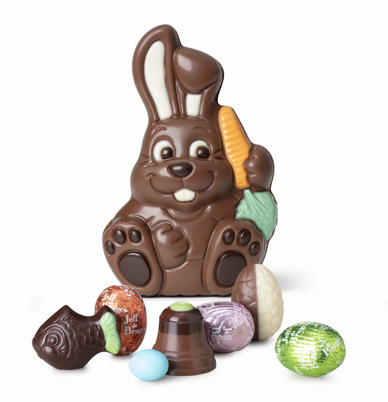 Eustache, le lapin de Pâques annoncera le début des festivités ! Ce sujet en chocolat au lait, accompagné de ses petits chocolats fourrés, fera un bea ... En savoir plus