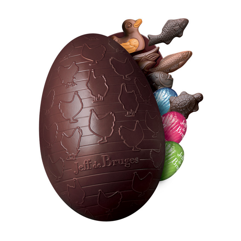 Sophie, Raphaël, Louve, Louis… Nous personnalisons vos oeufs de Pâques en écrivant les prénoms de vos poussins ! Ce bel oeuf en chocolat noir 59% cacao d’Équateur garni de délicieuses gourmandises rendra à coup sûr la chasse aux oeufs mémorable !