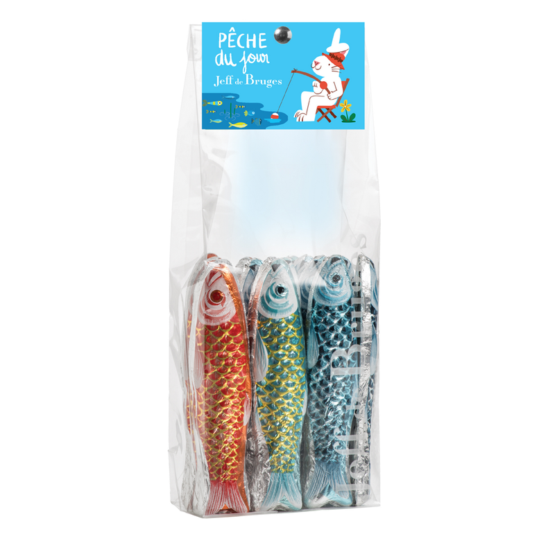 ASSORTIMENT DE SARDINES EN CHOCOLAT AU LAIT, EN CHOCOLAT NOIR ET EN CHOCOLAT NOIR AVEC CRÊPE DENTELLE (7,5%). Ingrédients : masse de cacao (fèves de cacao origine Équateur), sucre, beurre de cacao, LAIT entier en poudre, éclats de crêpe dentelle (farine de BLÉ, sucre, LAIT demi-écrémé, beurre concentré (LAIT), sel), émulsifiant : lécithines (SOJA), arôme naturel de vanille Chocolat au lait : 30% de cacao minimum. Chocolat noir : 52% cacao minimum. Peut contenir des traces d’oeufs, d’arachides, de graines de sésame et d’autres fruits à coque.