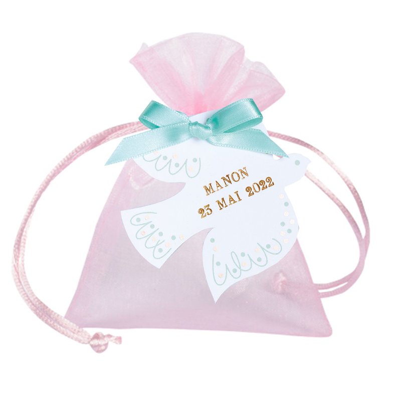 POCHETTE ORGANDI ETIQUETTE COLOMBE ROSE PALE POCHETTE ORGANDI ETIQUETTE COLOMBE ROSE PALE Couleur : Sélectionner Blanc Rose pâle Rose Fuchsia Bleu turquoise Bleu ciel Je choisis mes dragées