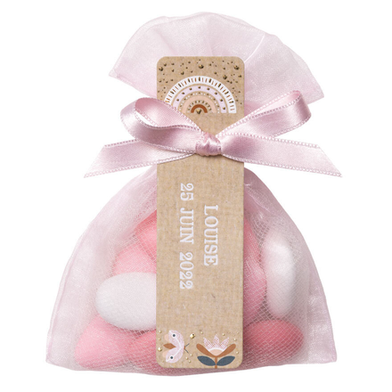 POCHETTE ORGANDI ETIQUETTE ARC EN CIEL ROSE Couleur : Sélectionner Blanc Rose pâle Rose Fuchsia Merci de sélectionner les caractéristiques du produit. Je choisis mes dragées