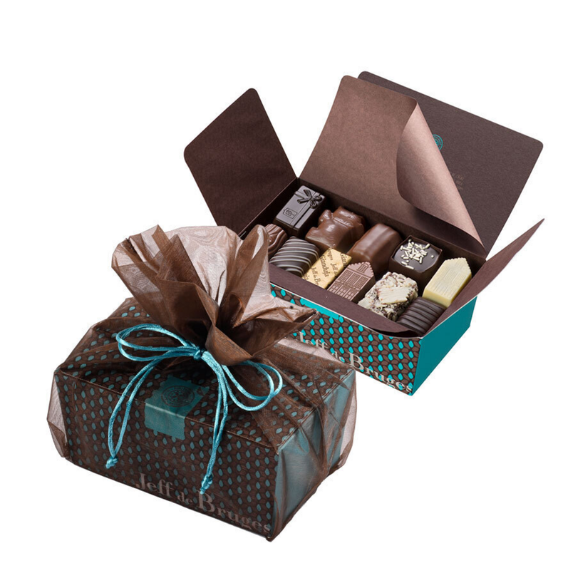 Enhance your 375 g ballotin (approximately 32 chocolates) with an attractive brown organdie pouch. Find out more