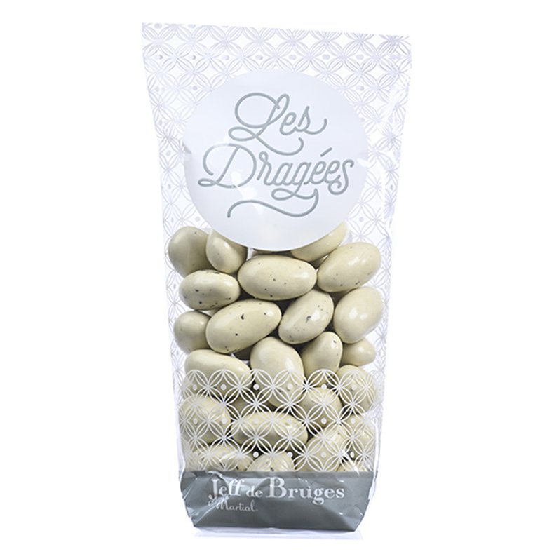 Gently roasted almonds coated in a rich hazelnut gianduja praline. A bag of approx. 50 sugared almonds for food lovers looking for an indulgent and delicious treat. Give your guests sweet and happy memories with these almonds in ivory, the symbol of kindness. Our recommendation: match your sugared almonds to your buffet or table decoration colour scheme. They bring style to your table and look as good as they taste!