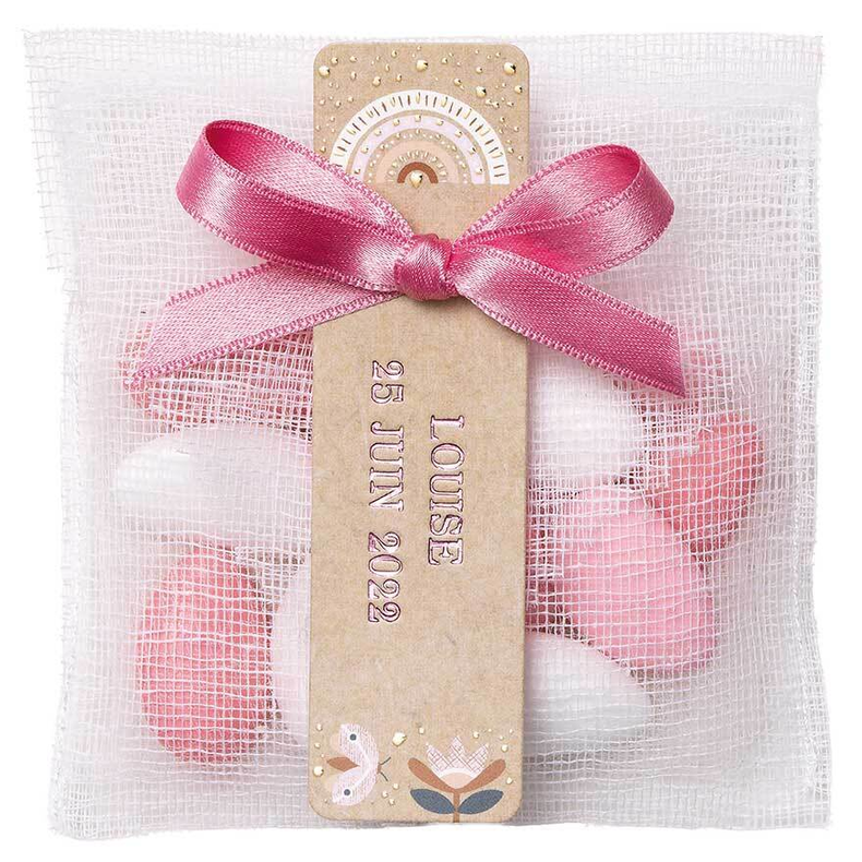 TARLATAN Pouch WITH PINK RAINBOW LABEL TARLATAN Pouch WITH PINK RAINBOW LABEL Color: Select Blue Pink I choose my dragees