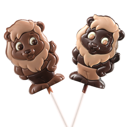 Fall for this pretty chocolate lollipop, lion shaped. An adorable sweet design, perfect for our chocolate-loving kiddie. Doesn't it remind you one of your childhood cartoons?