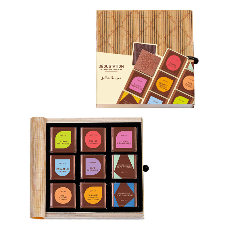 24 carrés, disposés dans un joli coffret en bambou, que vous pourrez déguster lors d’une pause gourmande bien méritée. Jeff de Bruges compose un assor ... Find out more