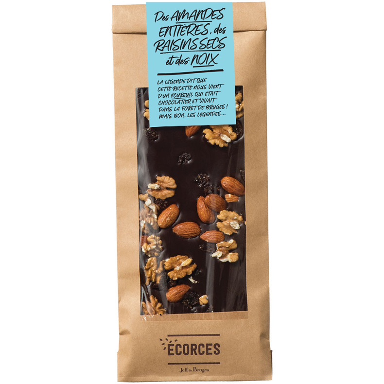 70% EXTRA BITTER DARK CHOCOLATE “MENDIANT” SLAB WITH RAISINS, WALNUTS AND CARAMELIZED ALMONDS Find out more