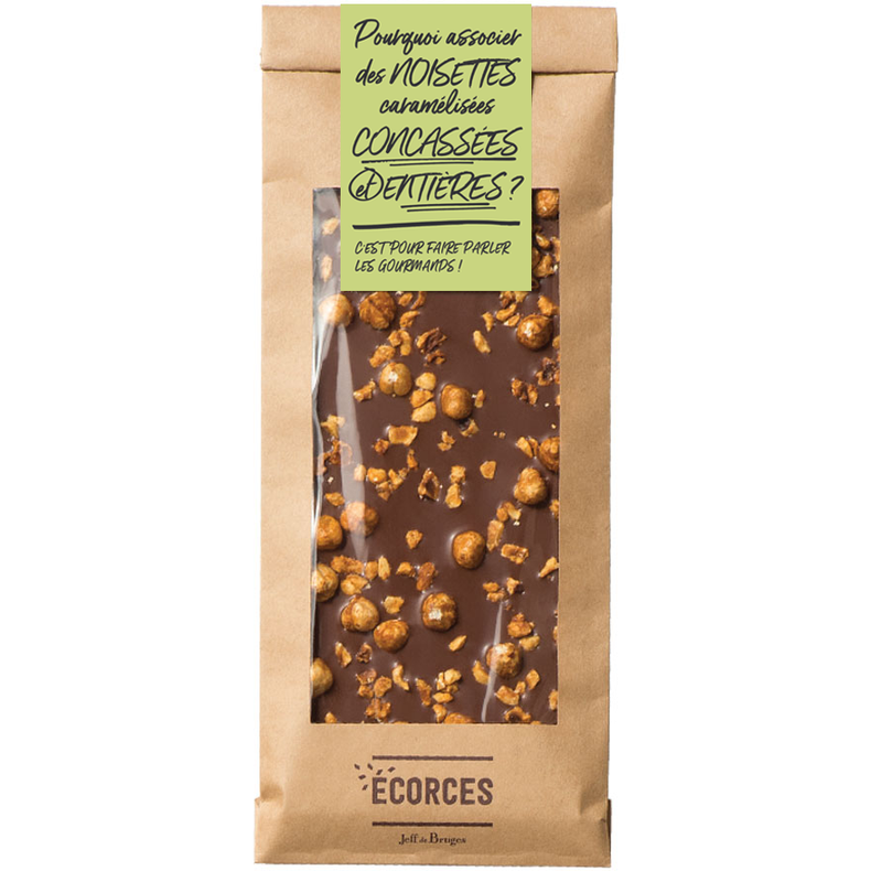Milk chocolate slab with caramelized hazelnuts Find out more