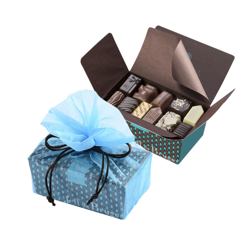Enhance your 375 g ballotin (approximately 32 chocolates) with an attractive blue organdie pouch. Find out more