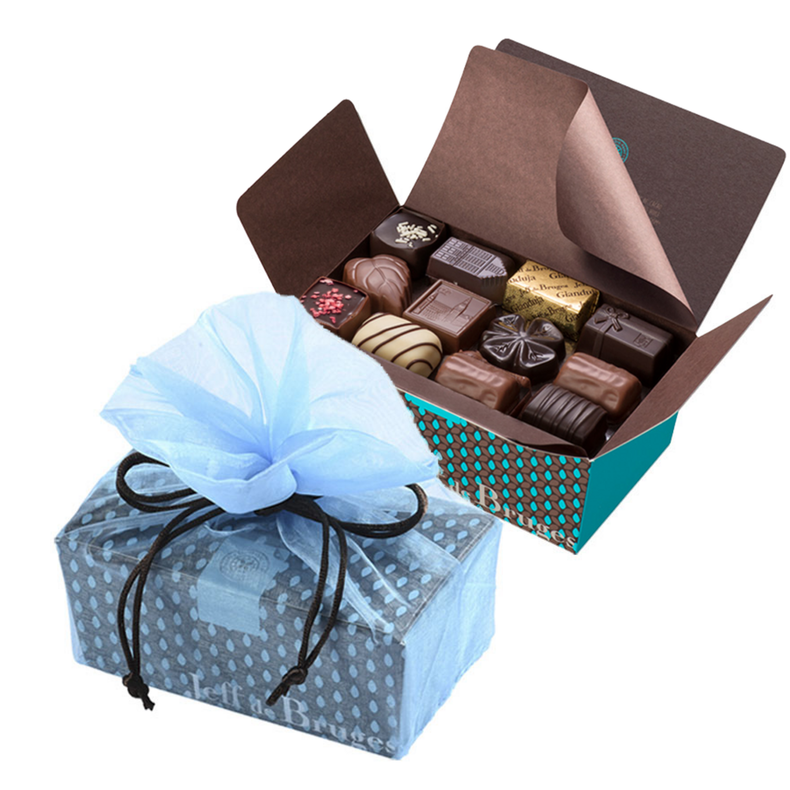 Enhance your 500 g ballotin (43 chocolates) with an attractive blue organdie pouch. Find out more