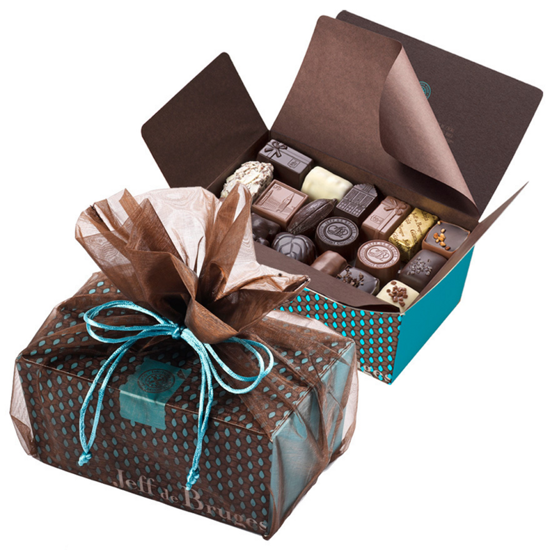 Enhance your 750 g ballotin (approximately 64 chocolates) with an attractive brown organdie pouch. Find out more