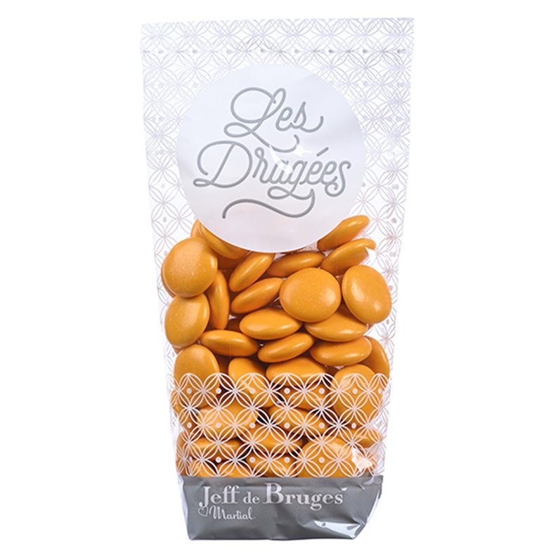 Premium 70% dark chocolate coated in an orange sugar shell. Chocolate beans are a joy to eat and the perfect favours to give to your guests. A bag contains approx. 70 beans available in 9 colours. Our recommendation: Mix and match the flavours i.e. pair classic sugared almonds with gianduja almonds.