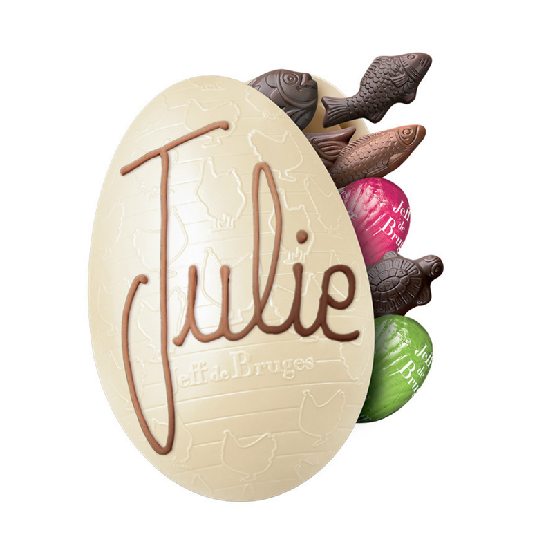 Sophie, Raphaël, Louve, Louis… you can customized your Easter eggs with your little lamb's name! This delicious white chocolate egg is filled with tan ... Find out more
