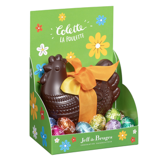 Discover Colette an chocolate hen with its sweet little praline-filled chocolate eggs... A real crowd-pleaser!