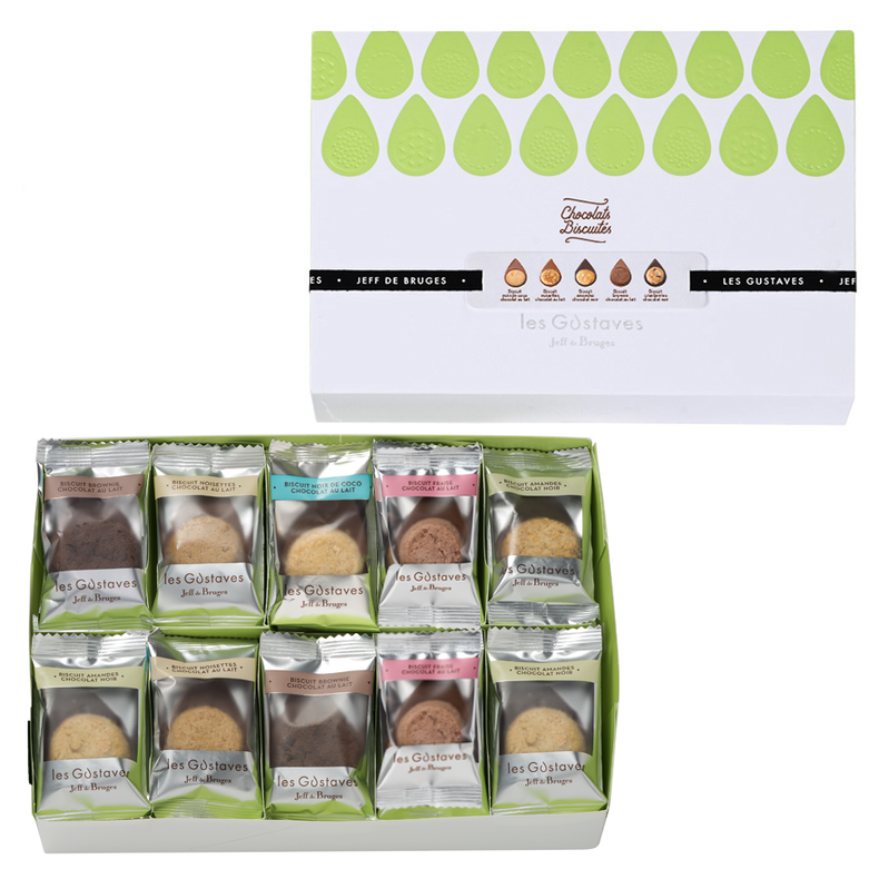 Treat yourself with this beautiful 'pâtissier' style box, filled with 30 delicious Gustaves in 5 recipes. Enjoy a generous-sized, deliciously biscuity chocolate, crunchy in the centre and melt-in-the-mouth around the sides – a visual and taste-tastic combination!