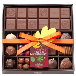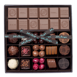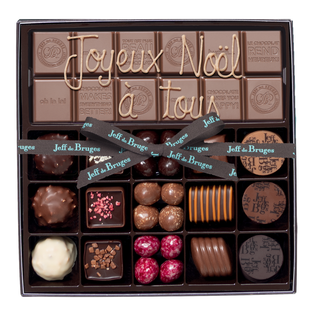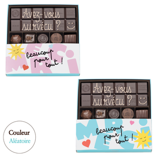 Box of 12 assorted chocolates and almonds with milk chocolate bar with customization