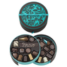 Round brown box - 26 assorted chocolates with dark chocolate tiny slab with customization