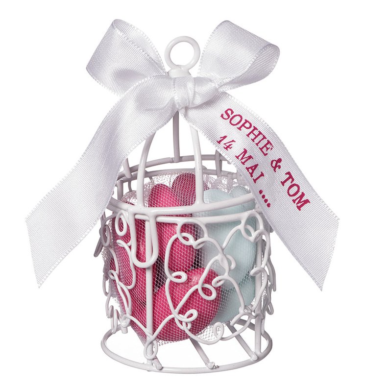 METAL CAGE METAL CAGE Net weight: 25g Mini metal birdcage with a customizable ribbon. Price €3.89 I choose my dragees