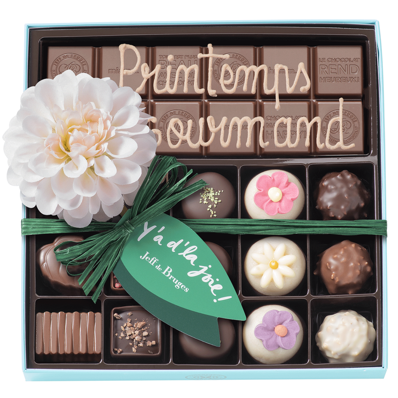 Boite 15 chocolats Printemps et tablette chocolat au lait avec personnalisation