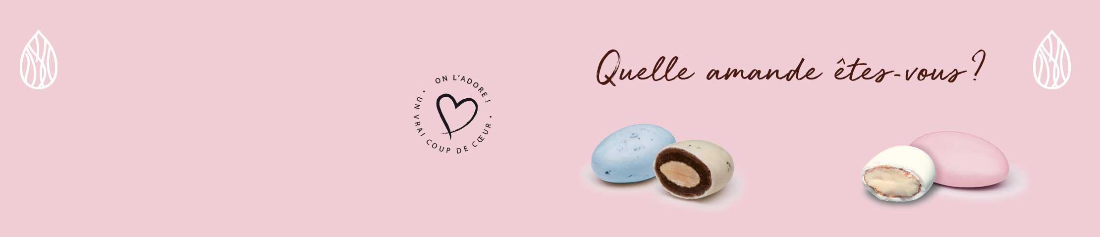 Découvrez toutes les couleurs et toutes les saveurs de nos dragées amande et dragées chocolat ! [...] sont réalisés à partir d’un chocolat noir corsé à 70% de cacao et nos petits cœurs sont faits à partir d’un fin chocolat au lait. [...] au lait, palets chocolat noir, oursons guimauve… quelques contenants amusants ou transparents pour les déposer dedans et le tour est joué ! [...]