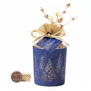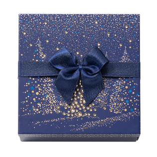 Boite de Noël carrée bleue - 32 chocolats assortis et sa barre gourmande sans personnalisation